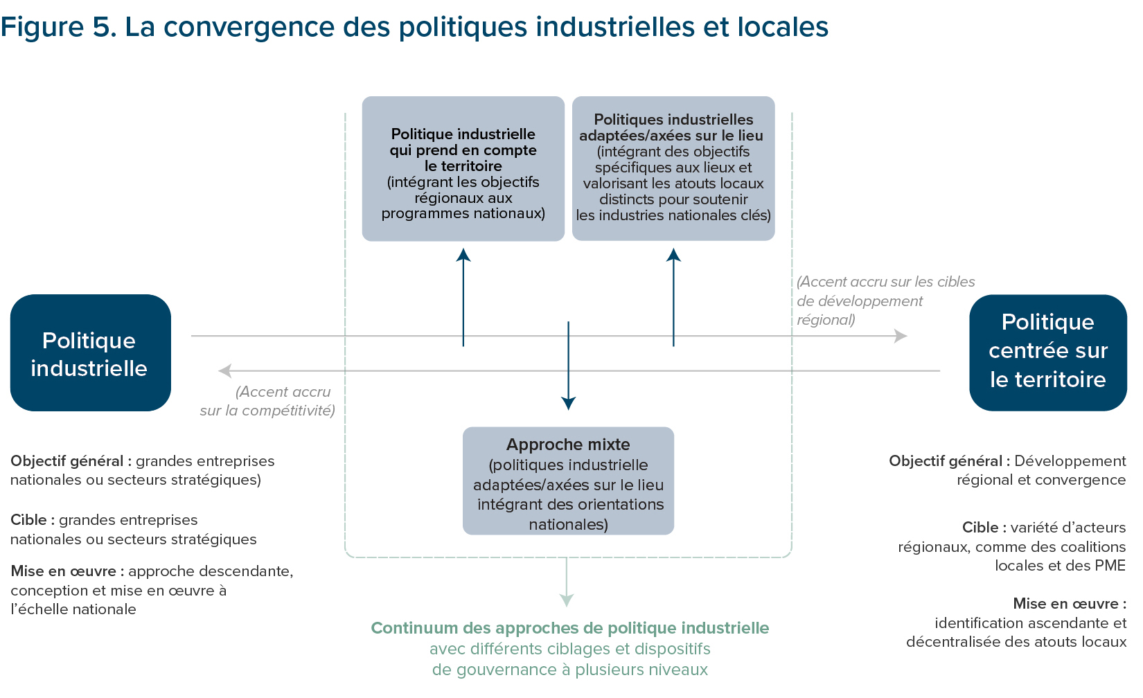 Les communautĂ©s autochtones, les entreprises rurales et les administrations locales se heurtent souvent Ă des obstacles qui les empĂȘchent dâaccĂ©der aux capitaux privĂ©s ou publics en raison de leur taille limitĂ©e, de la nĂ©cessitĂ© dâobtenir des garanties ou des exigences en matiĂšre de partage des risques. Les politiques industrielles locales peuvent aider Ă surmonter ces obstacles et Ă tirer parti des connaissances, des ressources et des rĂ©seaux locaux tout en assurant leur cohĂ©rence avec les objectifs nationaux (voir figure 5).
