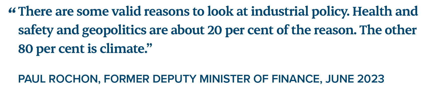While infrastructure is often not seen as industrial policy, the approach of the Canada Infrastructure Bank, which leverages both public and private capital, is arguably a form of industrial policy.