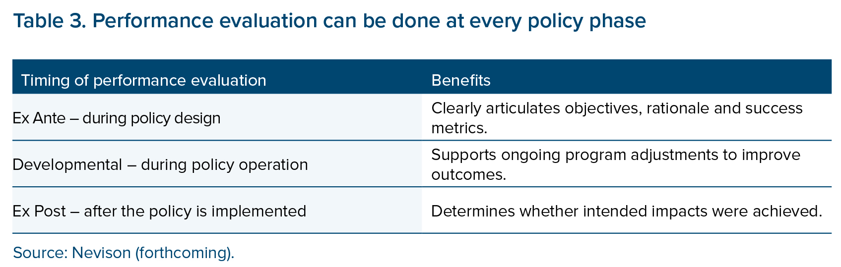 Rigorous evaluation underpins all aspects of successful industrial policy, providing a continuous feedback loop where learnings inform future decisions on design, instrument selection, and implementation. Standardized performance indicators can help to inform decision-making, allowing for the comparison of different types of industrial policies across organizations. Evaluations can also be used to communicate program performance to the public.
